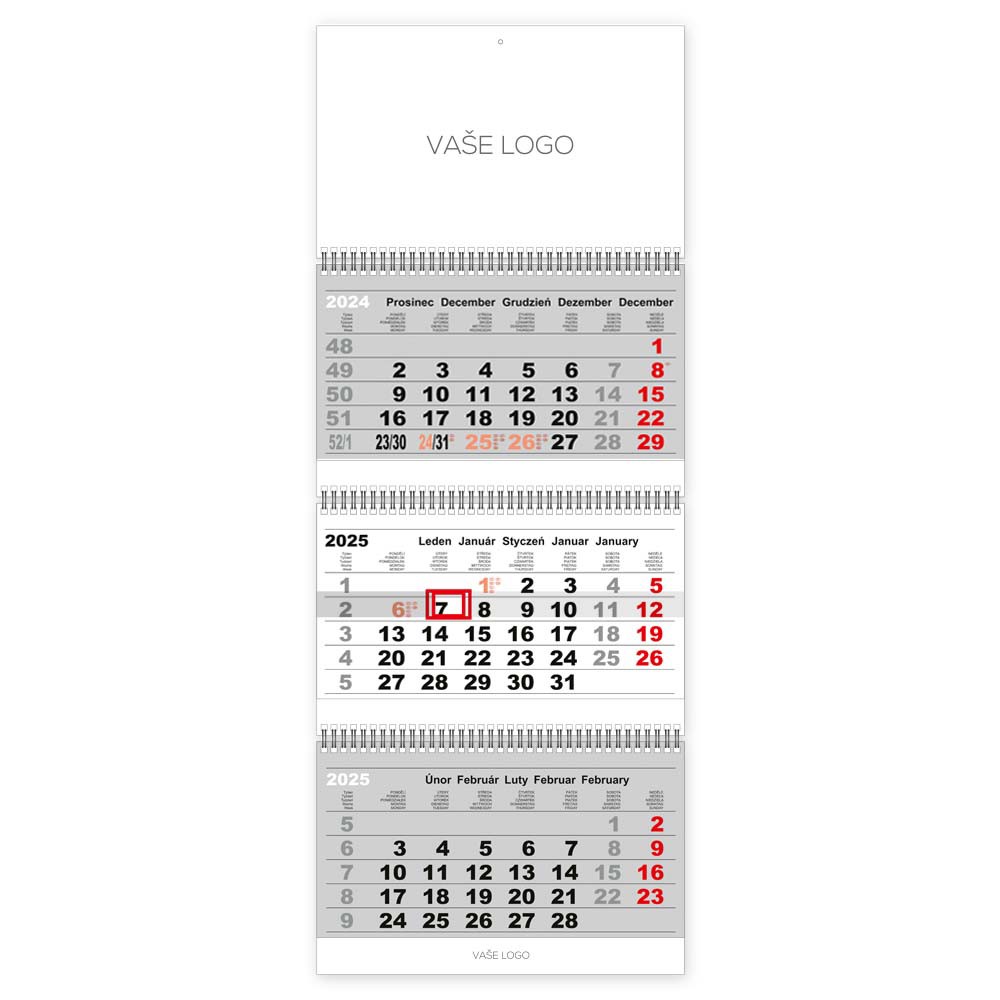 Nástěnný kalendář, 3x12 listů. Listy: ofset bílý 80 g/m².
