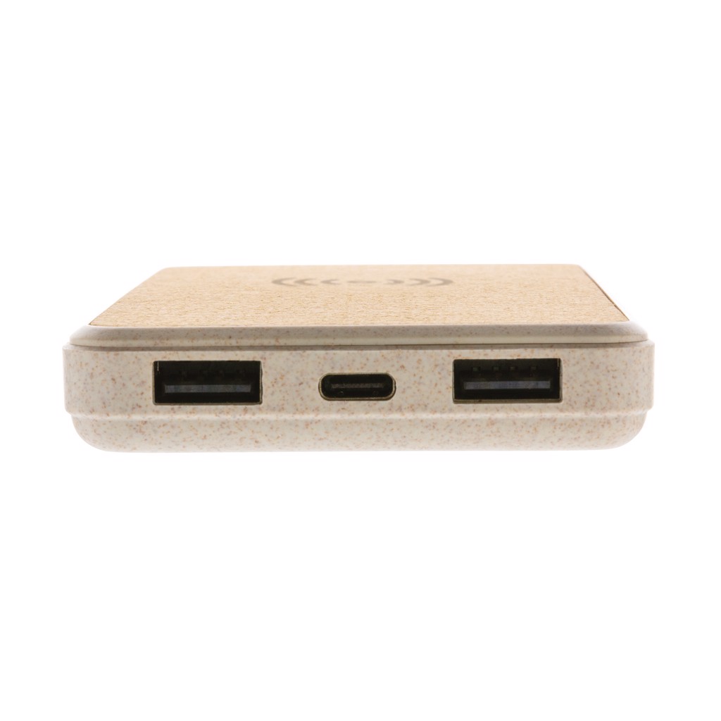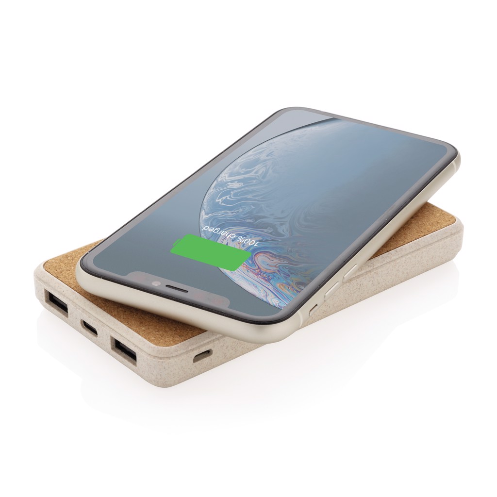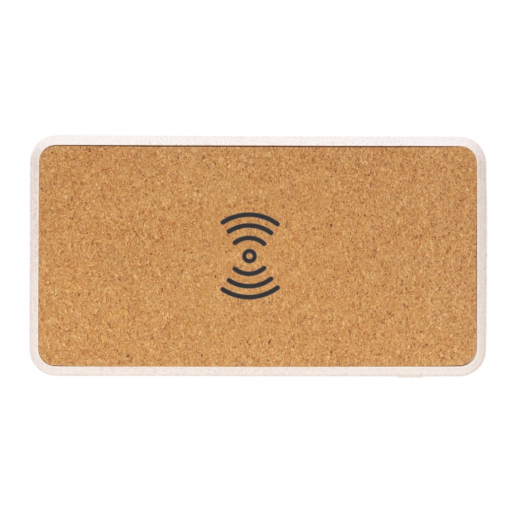 Powerbanka s kapacitou 8 000 mAh a bezdrátovým nabíjením 5W. Vrchní část vyrobená z přírodního korku, zbylé části z kombinace pšeničné slámy (35 %) a ABS. Nabíjení powerbanky je možné skrze micro USB nebo rychlejší USB C. Obsahuje vysoce kvalitní lithium polymerovou baterii řady A o kapacitě 8 000 mAh, čímž tak poskytuje dostatek energie pro plné nabití vašeho telefonu až 4x. Včetně indikátorů stavu nabití. Bezdrátové nabíjení je kompatibilní se všemi telefony podporujícími QI, jako jsou nejnovější generace Android, iPhone 8 a výše. Micro USB vstup: 5V/2A, USB C vstup: 5V/2A. USB výstup: 5V/2.1A; bezdrátový výstup: 5V/1A 5W. Produkt a kabel jsou vyrobeny 100 % bez použití PVC.
