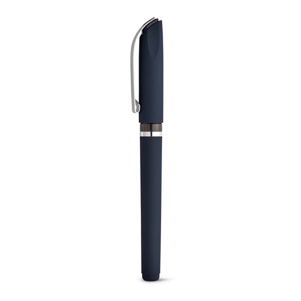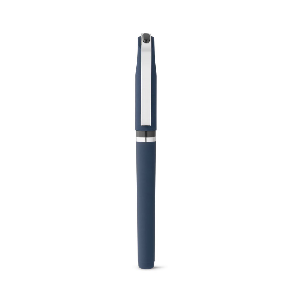 Kuličkové pero z ABS s pogumovaným povrchem, protiskluzovou rukojetí a kovovým klipem. Černý inkoust, balení obsahuje gelovou náplň. ø12 x 140 mm
