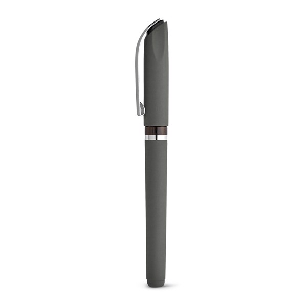 Kuličkové pero z ABS s pogumovaným povrchem, protiskluzovou rukojetí a kovovým klipem. Černý inkoust, balení obsahuje gelovou náplň. ø12 x 140 mm