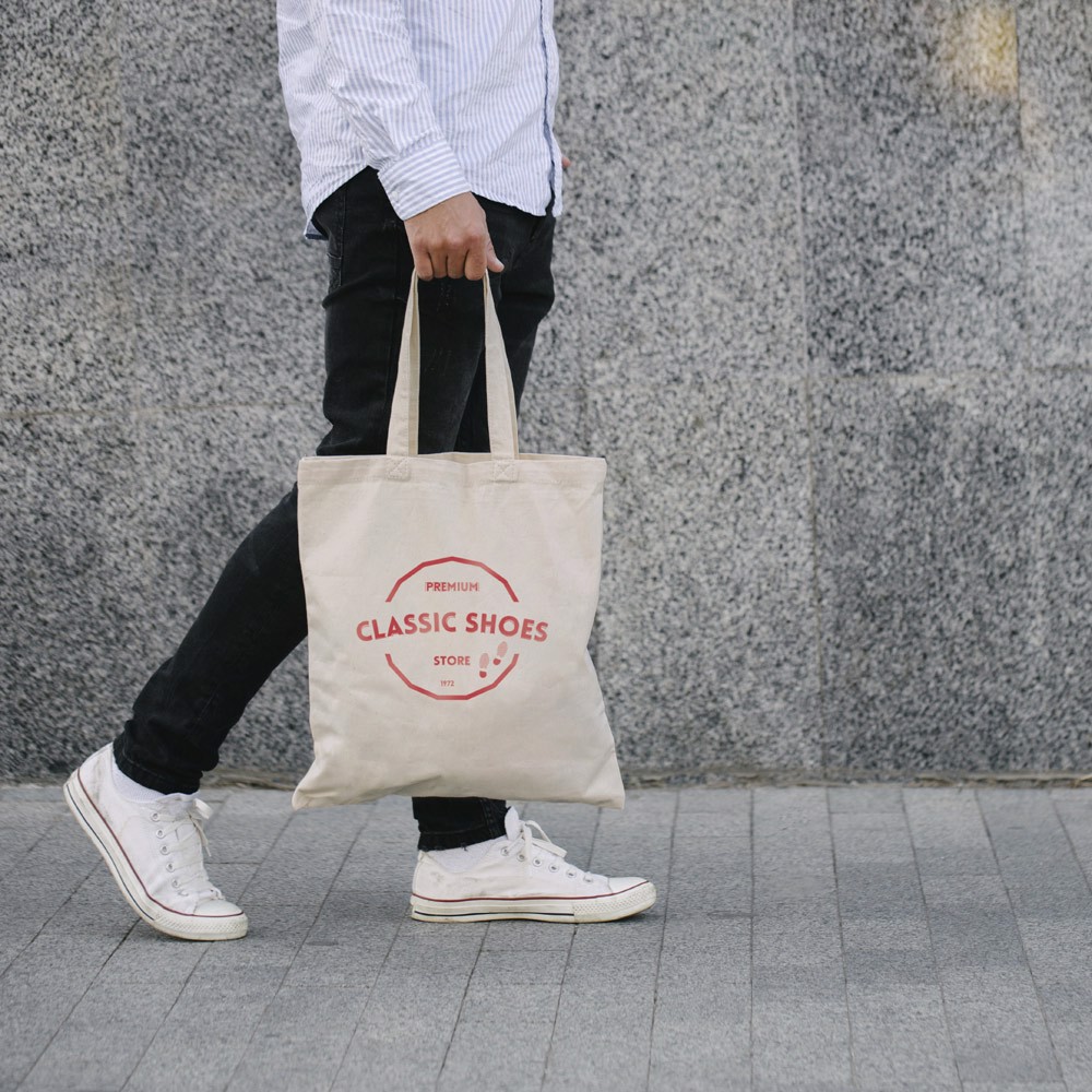 Taška ze 100% bavlny (140 g/m²) s uchy 60 cm. 375 x 415 mm