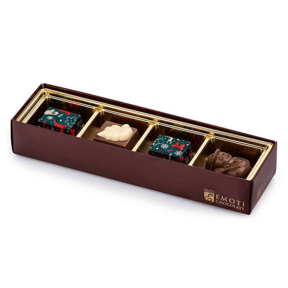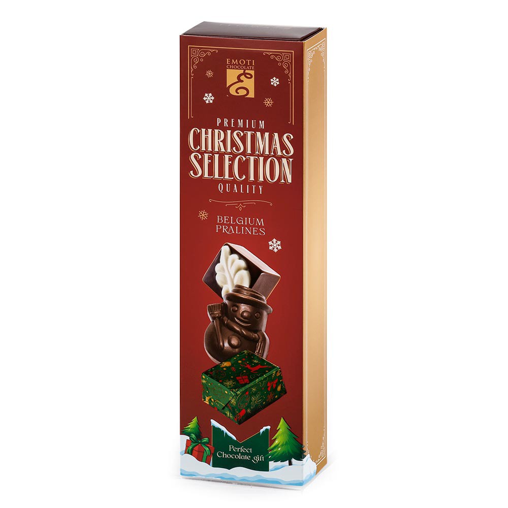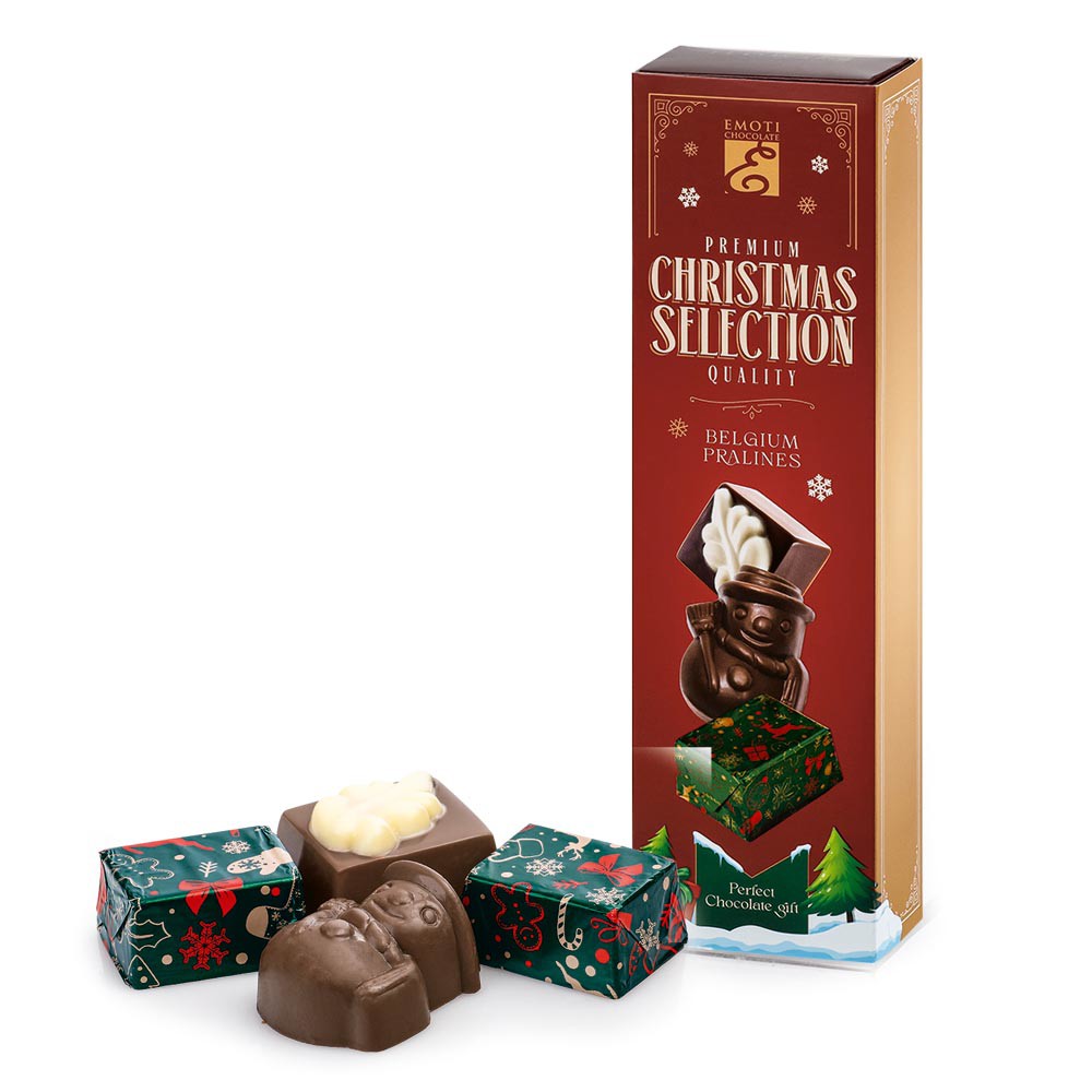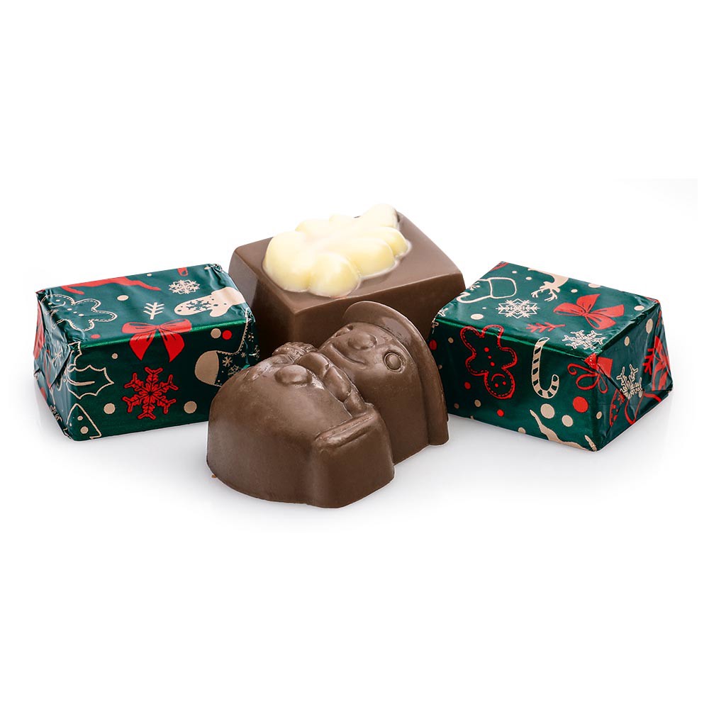 Výběr vánočních pralinek z mléčné čokolády, lískooříšková náplň brésilienne, 60 g.