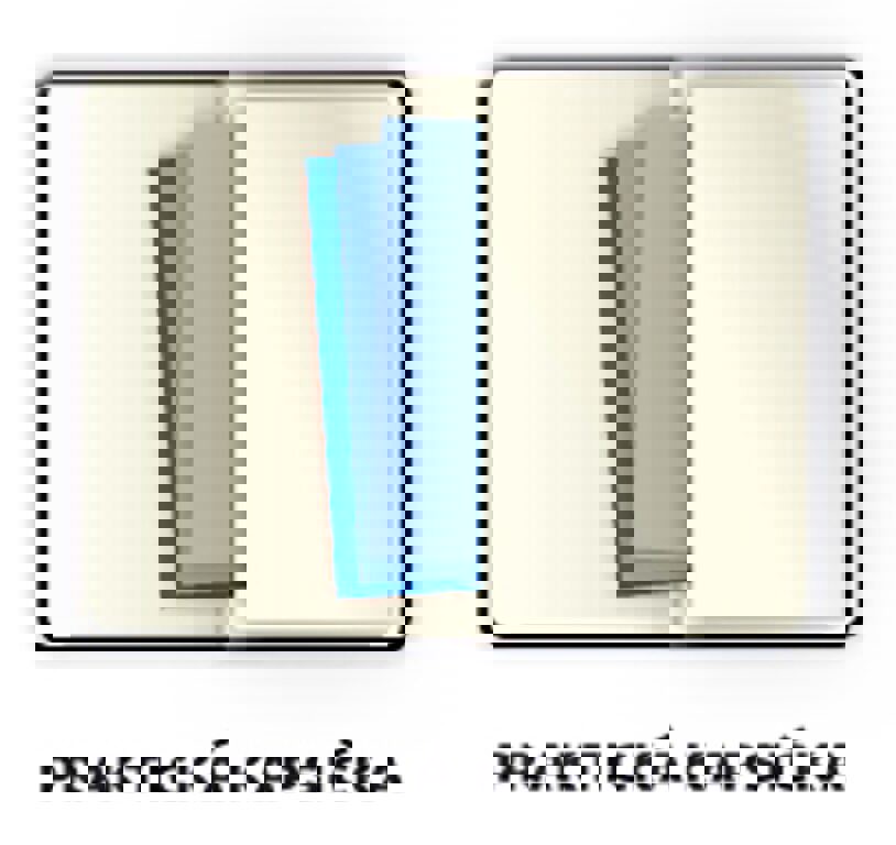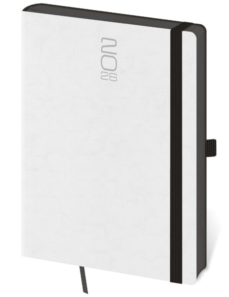 K nerozeznání od skutečné kůže, navíc doplněn gumičkou přes hřbet a ořízkou bloku v černé barvě. Dalšími doplňky je papírová kapsa na vnitřní straně zadních desek a poutko na tužku.