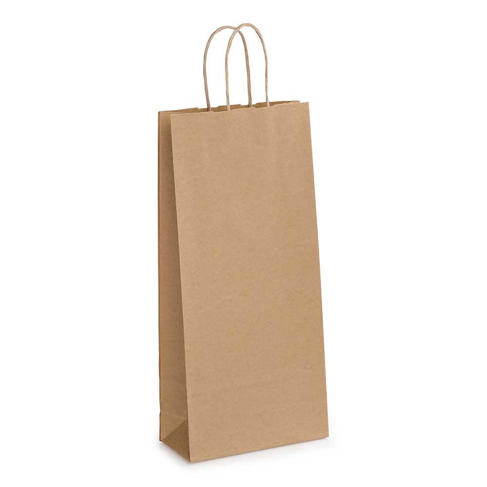 Taška na dvě láhve vína z kraftového papíru, kroucená papírová držadla. Součástí karton na proložení láhví uvnitř.