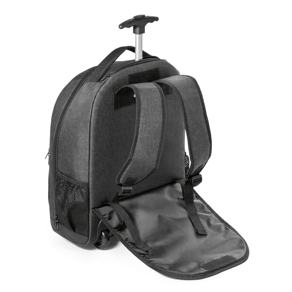 Batoh na kolečkách pro notebooky, který se přizpůsobí různým situacím vašeho každodenního života. Jako batoh zaručuje větší mobilitu, zatímco jako kufr na kolečkách nabízí větší pohodlí při cestování na delší vzdálenosti. Obsahuje odnímatelnou kovovou desku s magnetem pro snadnou personalizaci.Vnější materiál: polyester 600D s vysokou hustotouVnitřní materiál: polyester 210DKapsa na počítač: 15.6 palcůObjem (l): 21Přihrádky: 1 hlavní přihrádkaVnější kapsy: 2 přední kapsy na zip a 2 boční kapsy ze síťovinyDalší vlastnosti: polstrovaný chránič koleček, výsuvná kovová rukojeť, odnímatelná kovová destička pro personalizaci 340 x 430 x 170 mm | Deska: 50 x 20 mm
