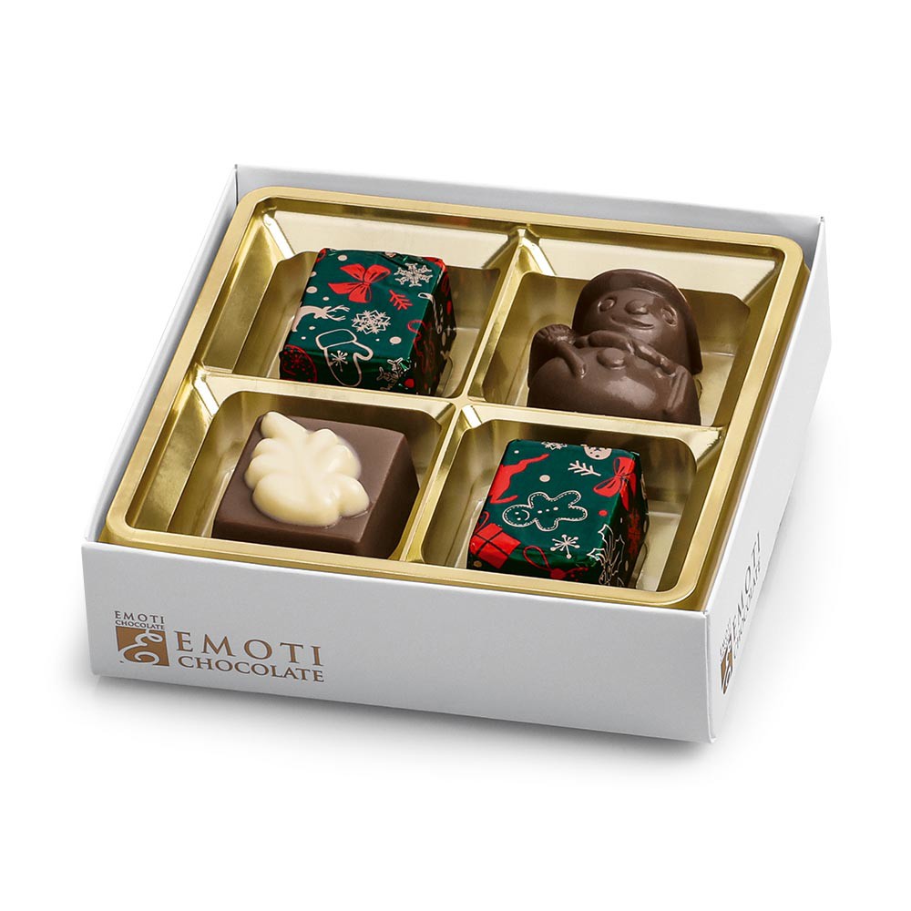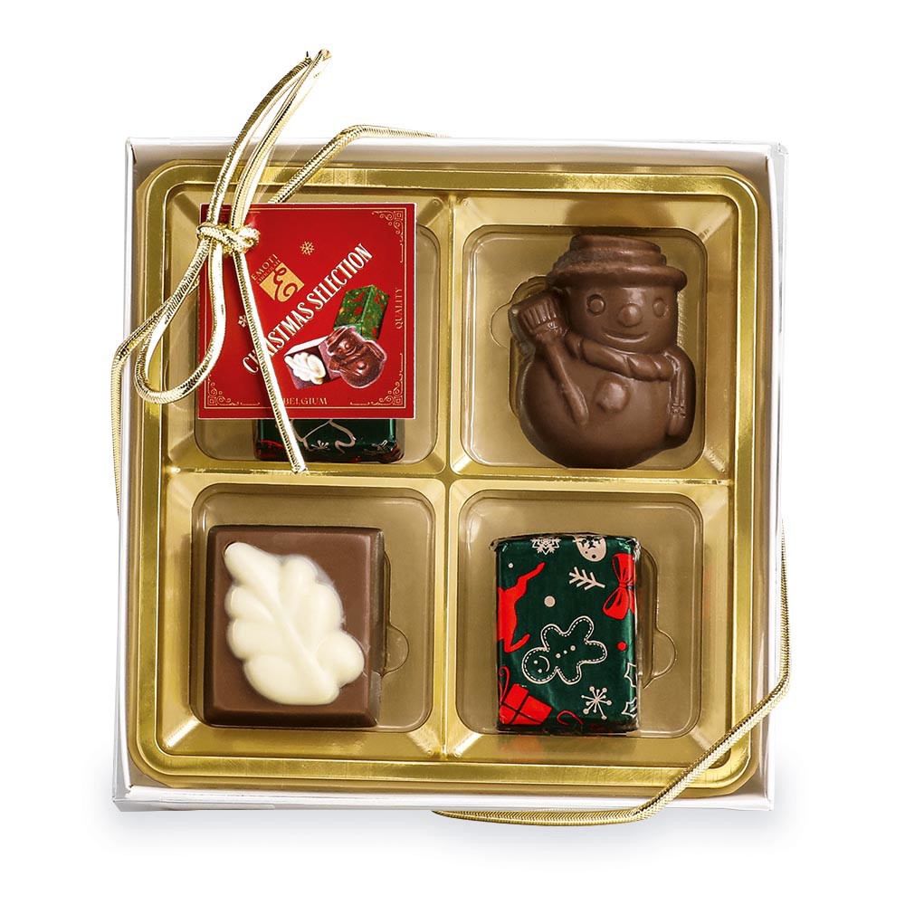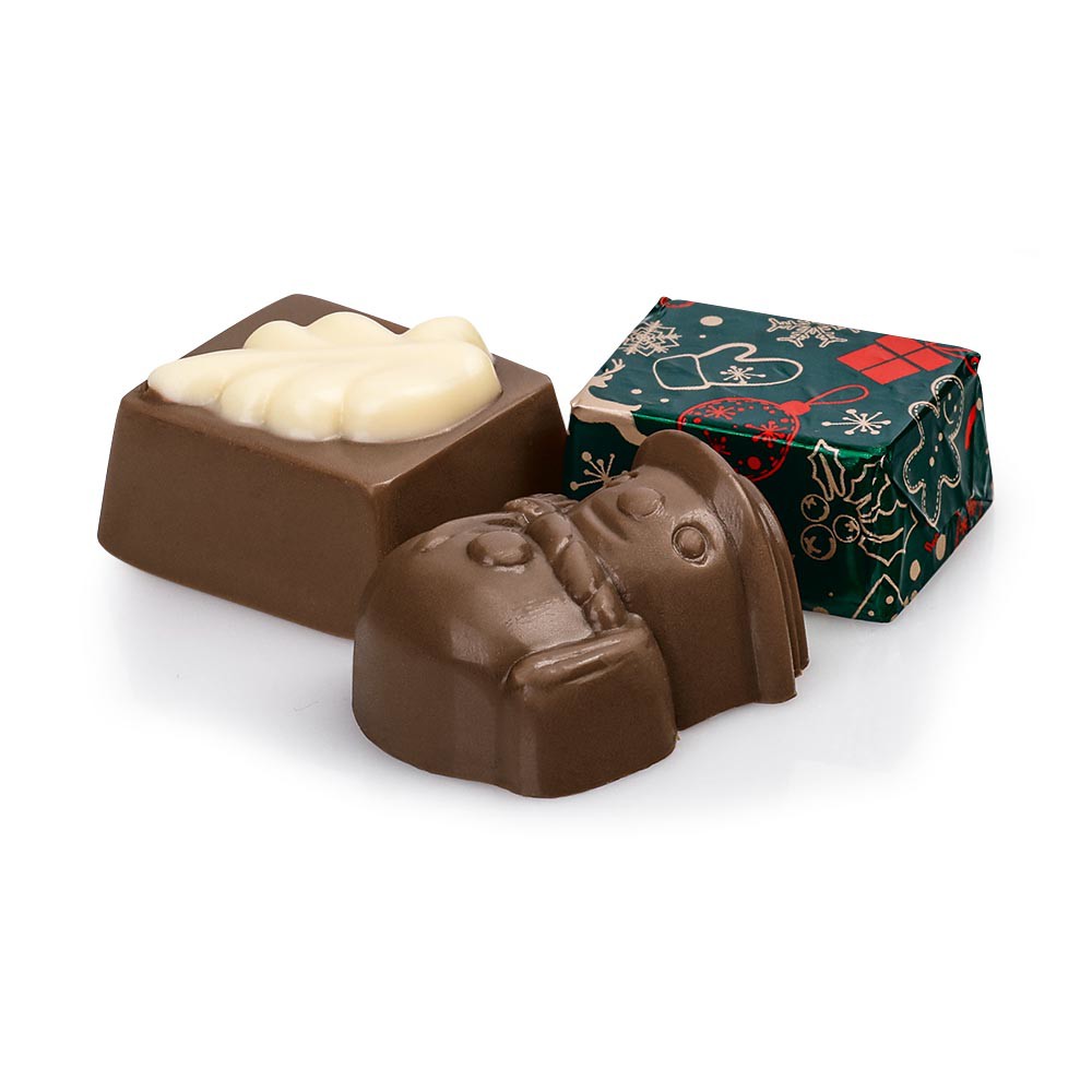 Výběr vánočních pralinek z mléčné čokolády, lískooříšková náplň brésilienne, 60 g.