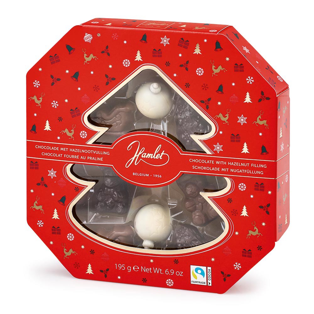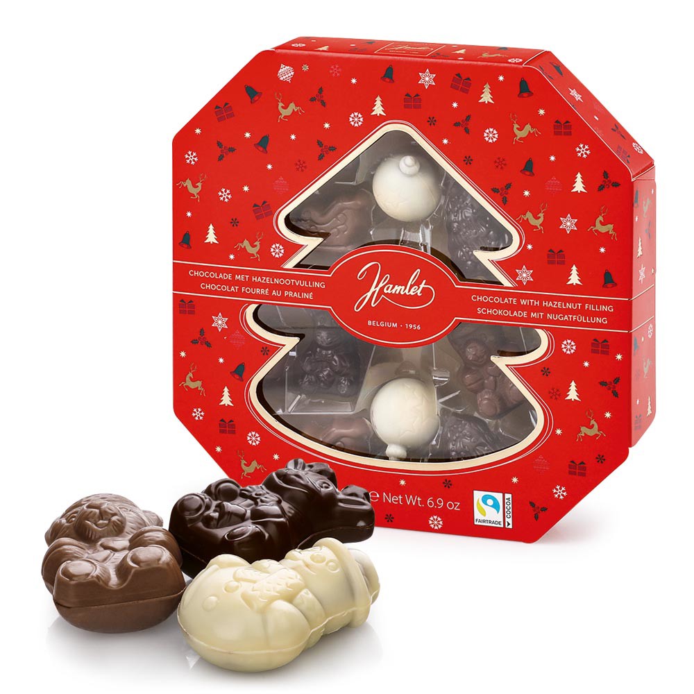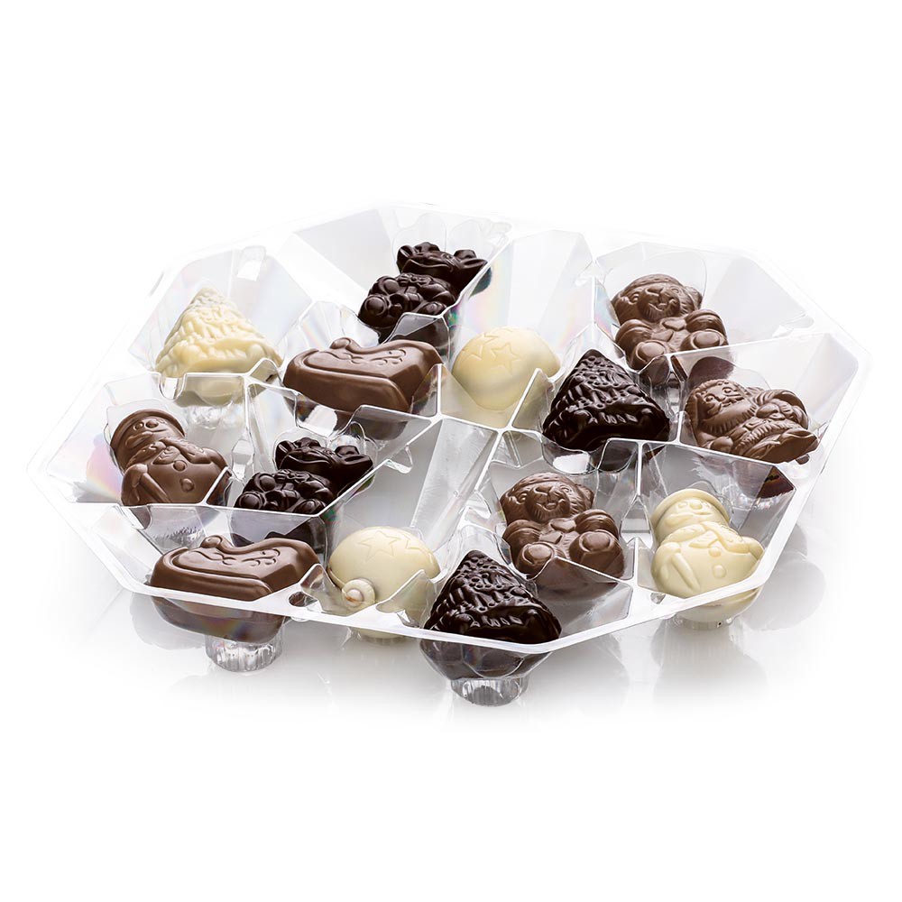Vánoční belgické pralinky - plněné vánoční figurky, lískooříšková náplň, 200 g.
