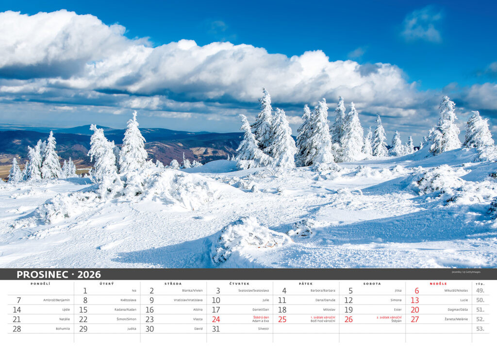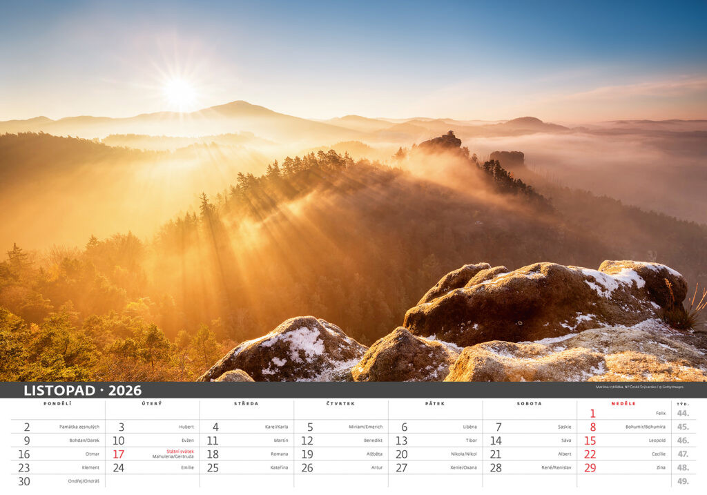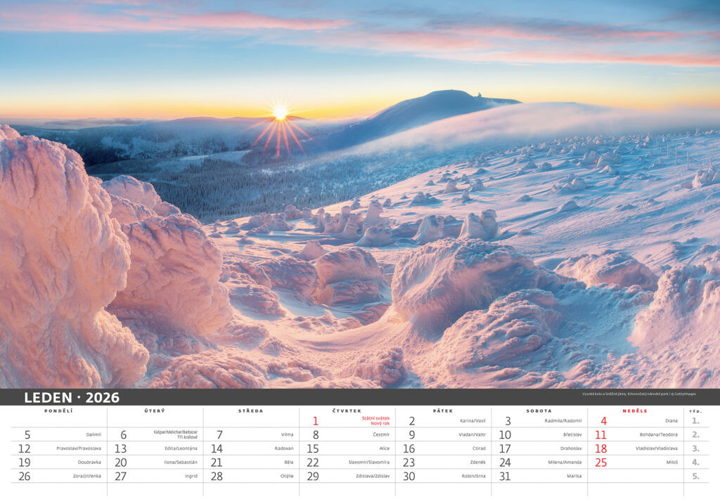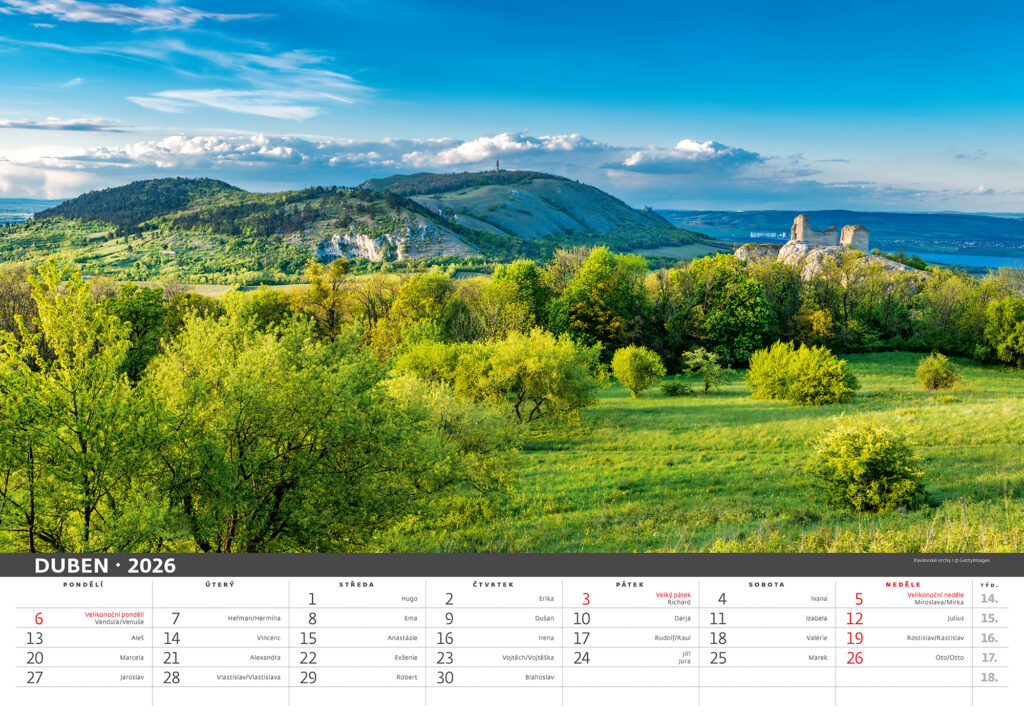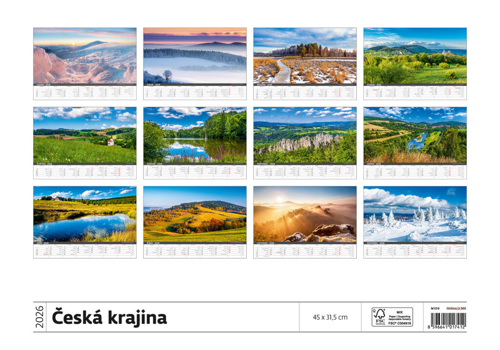 Prostor pro přítisk: 45 x 7 cm Kalendář Česká krajina 2026
