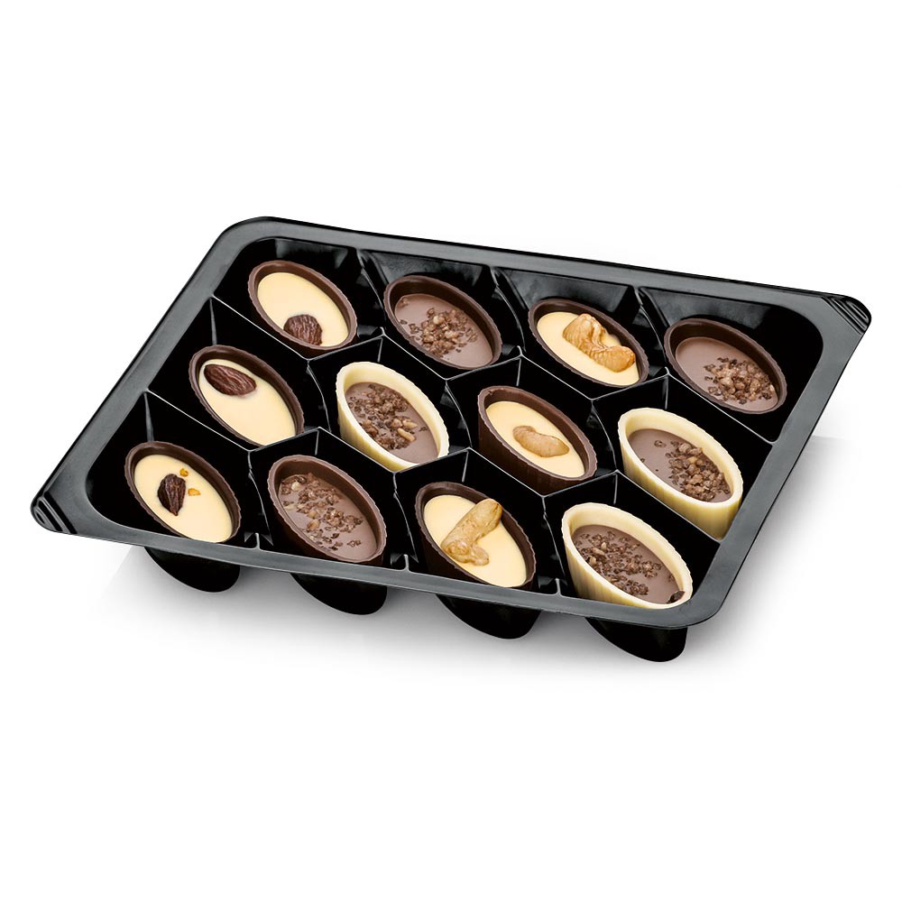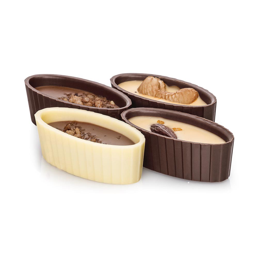 Plněné čokoládové lodičky s ořechy, 125 g.