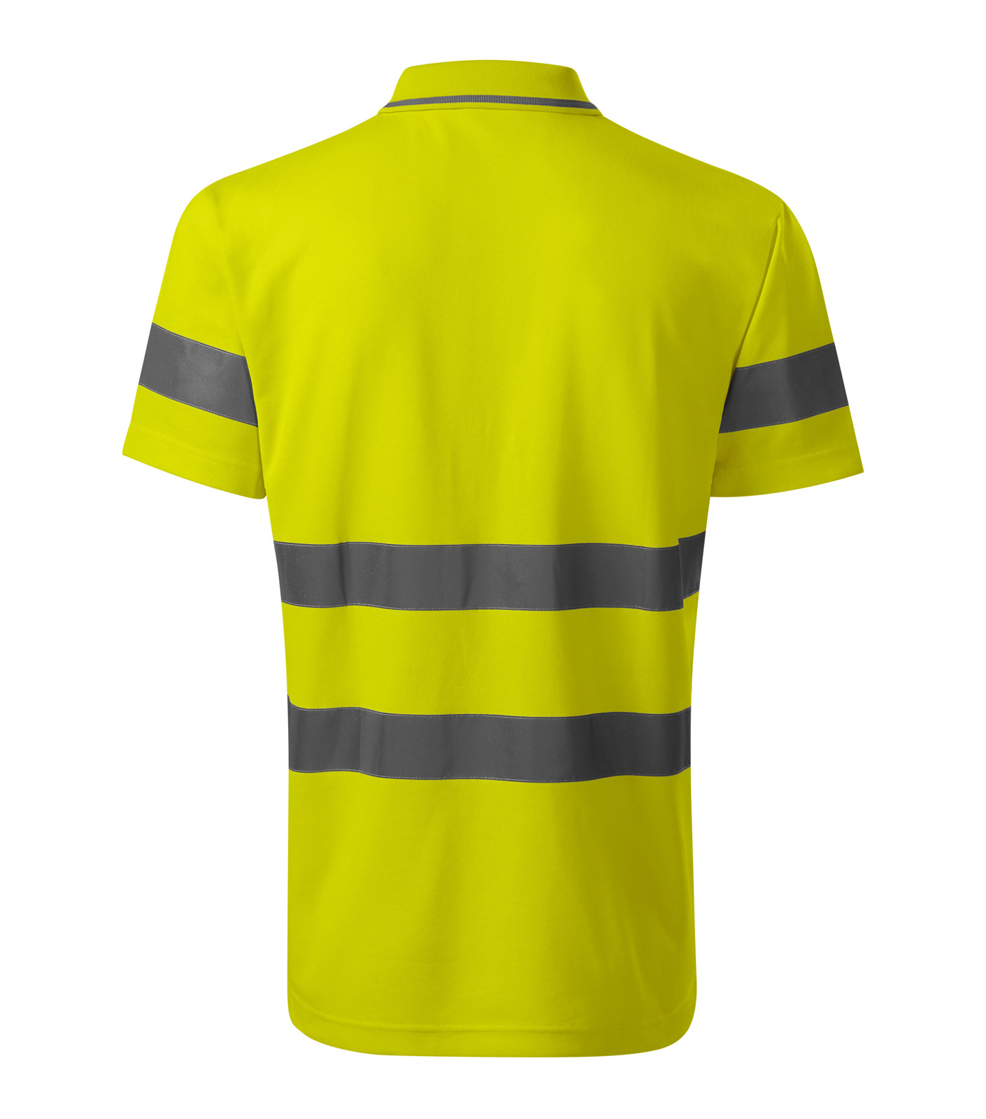 Oděv s vysokou viditelností, vnější strana fluorescenční polyester, vnitřní strana bavlněná, certifikované retroreflexní pruhy 3M, střih s bočními švy, límeček s kontrastním proužkem z žebrového úpletu 1:1, léga s 3 knoflíčky v barvě materiálu, vnitřní průkrčník začištěn páskou z vrchového materiálu, zpevnění ramenních švů páskou, certifikace dle norem EN ISO 20471/A1 (třída 2) a EN ISO 13688