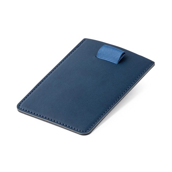 Obal na karty z PU s ochrannou technologií RFID s polyesterovou páskou pro snadné vyjmutí karet. Kapacita pro uložení až 2 karet. 92 x 65 x 2 mm