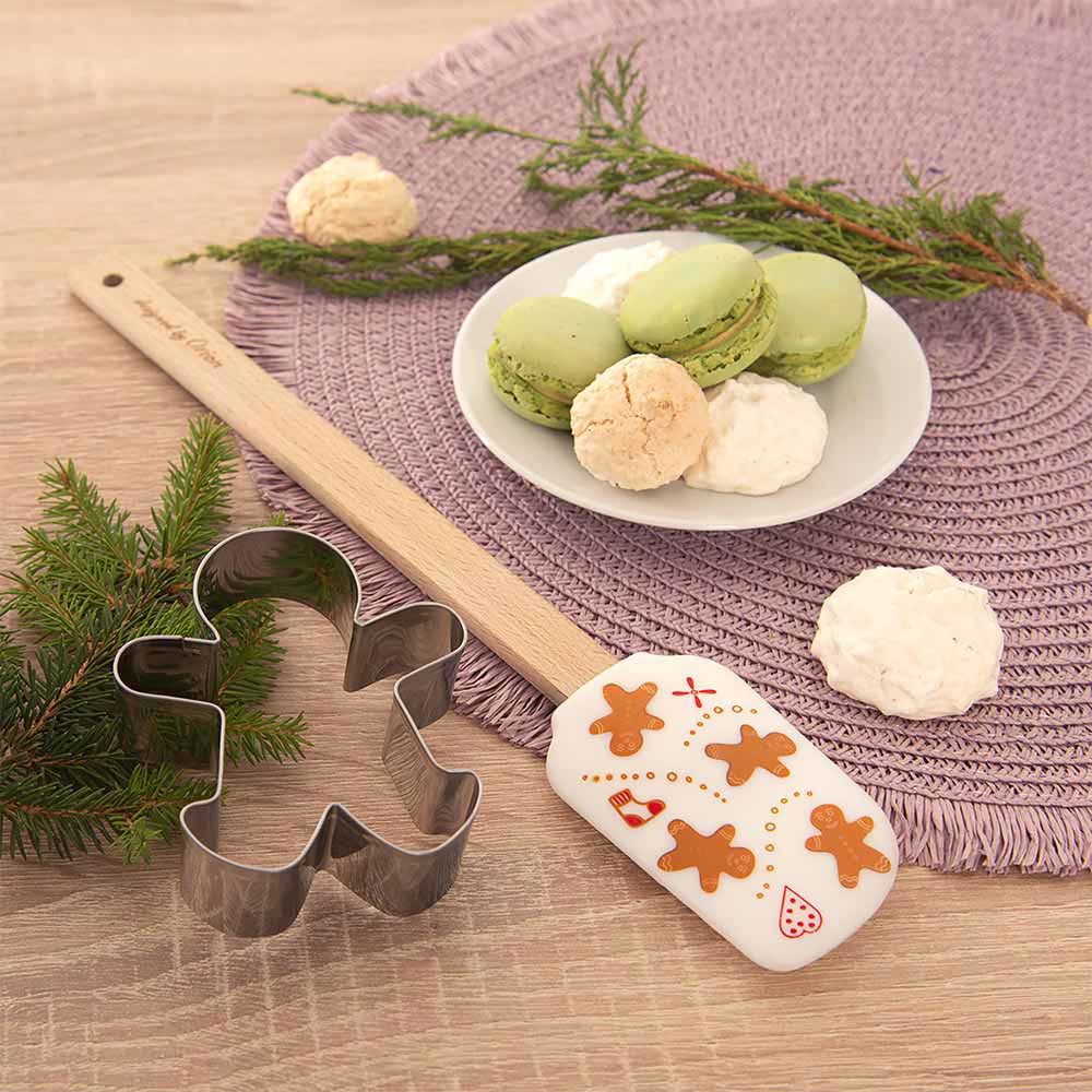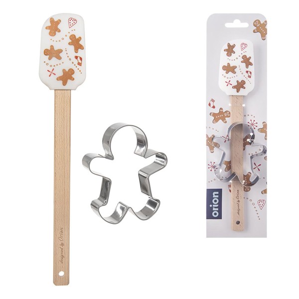 Sada kuchyňské stěrky o délce 29 cm a vykrajovátka o délce ca 9 cm.