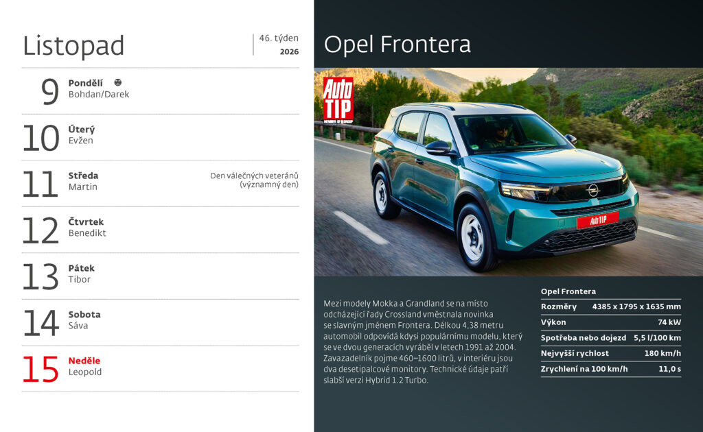 Prostor pro přítisk: 22,6 x 3 cm Kalendář Auta 2026