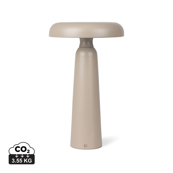 Kompaktní lampa s moderním designem, který jí dodává charakter i styl. Vyrobeno z kovu a recyklovaného ABS. Lampa je vybavena dotykovou funkcí na horní straně, která přepíná mezi teplým světlem, bílým světlem a teplým bílým světlem. Je dobíjecí přes USB-C, 30cm nabíjecí kabel TPE Typ C na USB-A je součástí balení, a poskytuje až 8 hodin svícení. Certifikace RCS (Recycled Claim Standard), certifikace RCS zaručuje, že celý dodavatelský řetězec recyklovaných materiálů je certifikován. Celkový recyklovaný obsah vychází z celkové hmotnosti výrobku. Tento výrobek obsahuje 7 % recyklovaného ABS s certifikací RCS.