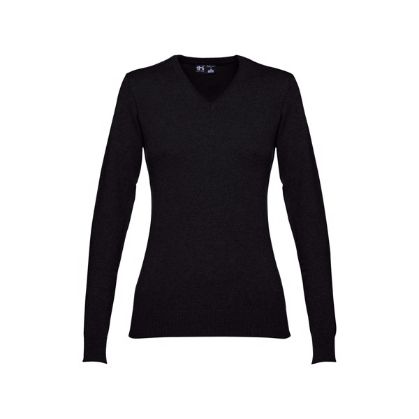 THC MILAN WOMEN. Dámský svetr s výstřihem do V z bavlny a polyamidu - Černá / XXL