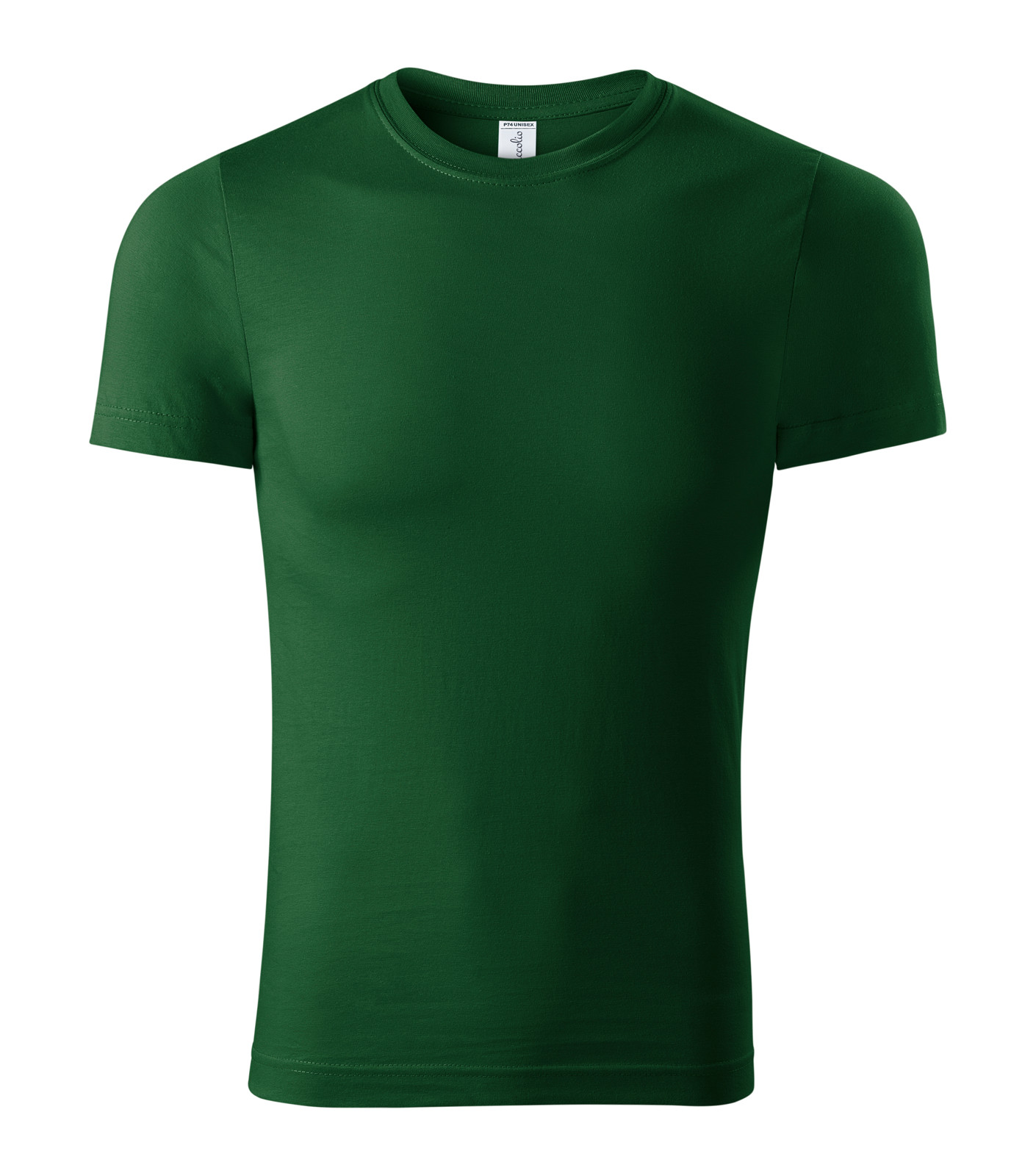 Tubulární střih, lem průkrčníku z žebrového úpletu 1:1, vnitřní část průkrčníku začištěna páskou z vrchového materiálu, zpevnění ramenních švů páskou, odtrhávací etiketa