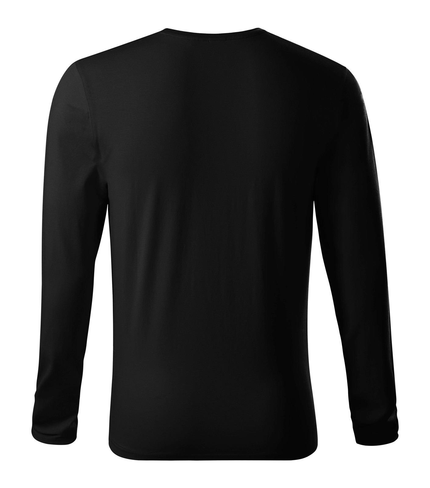 Strečový materiál udržující stálost tvaru, přiléhavý střih s bočními švy, úzký lem průkrčníku z žebrového úpletu 1:1 s 5 % elastanu, vnitřní část průkrčníku začištěna kontrastní páskou, zpevnění ramenních švů páskou, dlouhé rukávy
