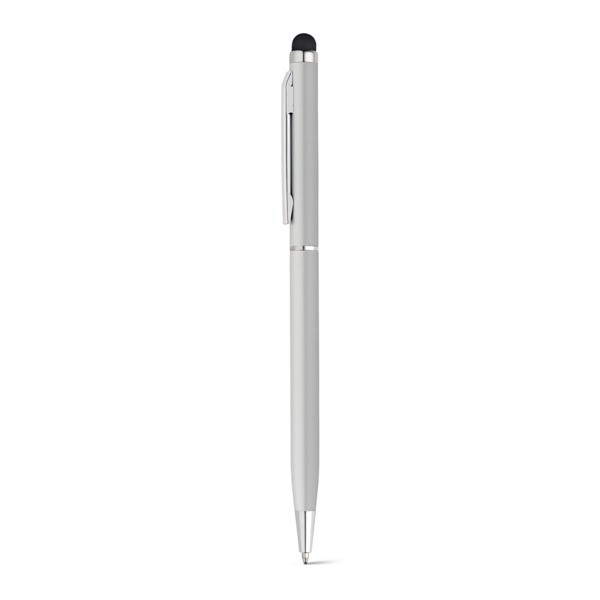 ZOE. Hliníkové kuličkové pero s otočným mechanismem a dotykovým hrotem - Saténově Stříbrná